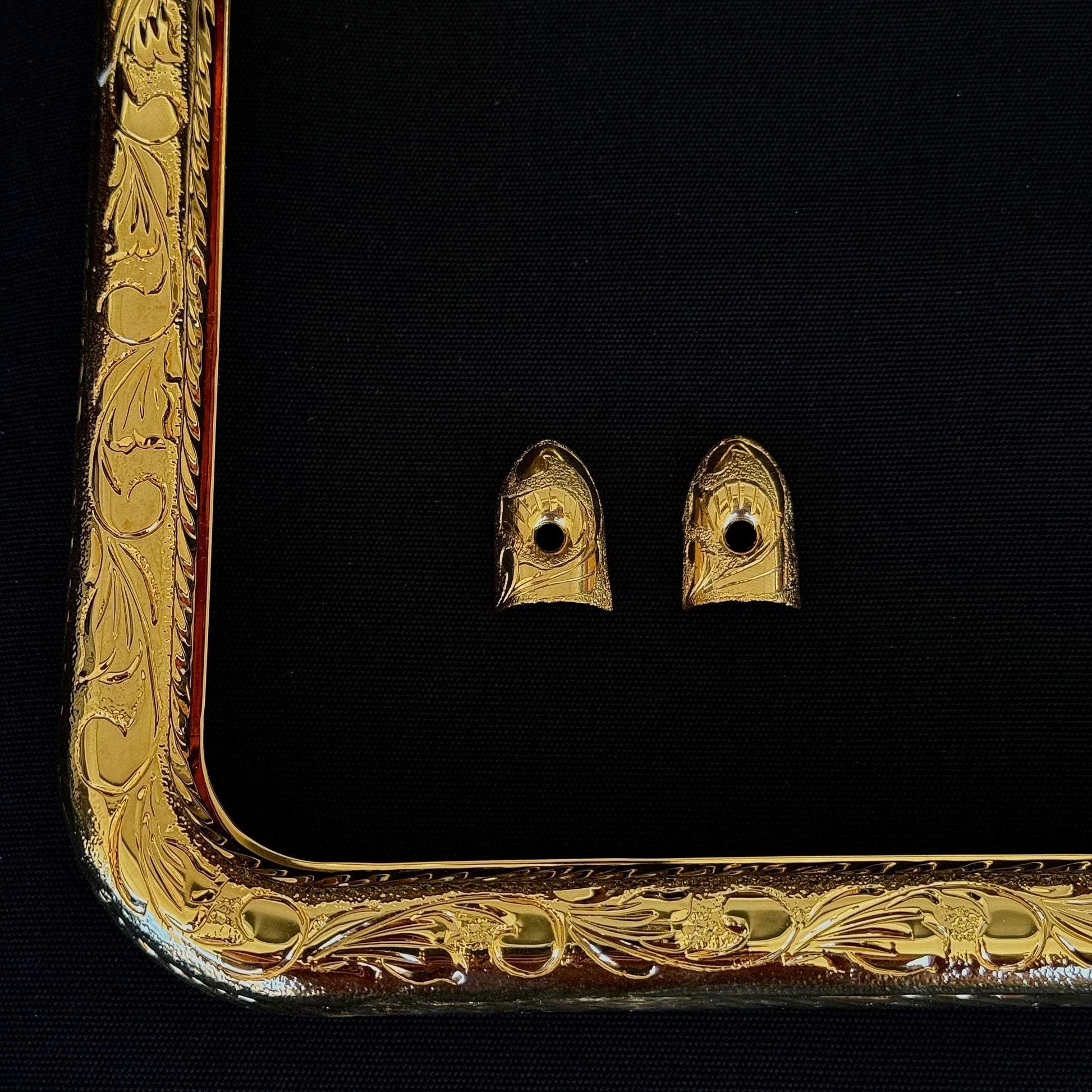 The Engraved standard non-opening gangster window features a CNC machined aluminum frame that offers a blend of lightweight construction and strength, available in both Chrome and 24k Gold Plated options. A specifically cut ICI Lucite S-A-RII Acrylic lens, resistant to cracking or shattering, is included to go within the frame. Add detailed elegance and flair to your ride with an Engraved Gangster Window and witness your car's transformation into an undeniable head-turner.